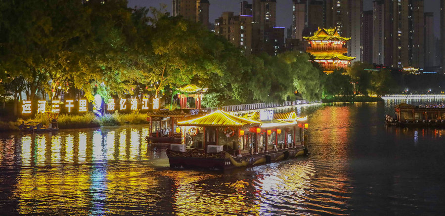 Residents and tourists come here, strolling along the bank, shopping at the night market to find local snacks and handicrafts, enjoying the iconic Huaiyang cuisine at restaurants overlooking the canal, or going on a boat ride on Liyunhe. With colorful lighting teasing reflections of trees and ancient-style architecture along the banks, the 30-minute ride allows tourists to fully take in the canal's nighttime beauty.